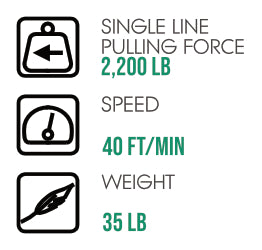The PCW5000 is a lightweight though powerful pullling winch. Able to pull 2,200 lb in a single line, note that this model is not designed for lifting.